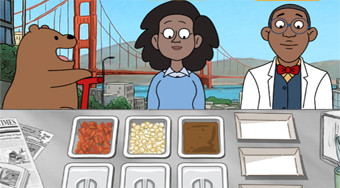 Ayuda a los We Bare Bears a ofrecer comida rápida cerca del emblemático puente Golden Gate. Prepare papas fritas con salsa exactamente según sus deseos.