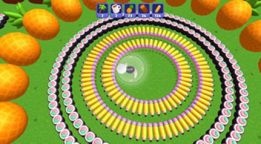 Mueve los cuchillos giratorios por el área de juego, corta diferentes tipos de fruta, aumenta tu fuerza y despeja toda el área.